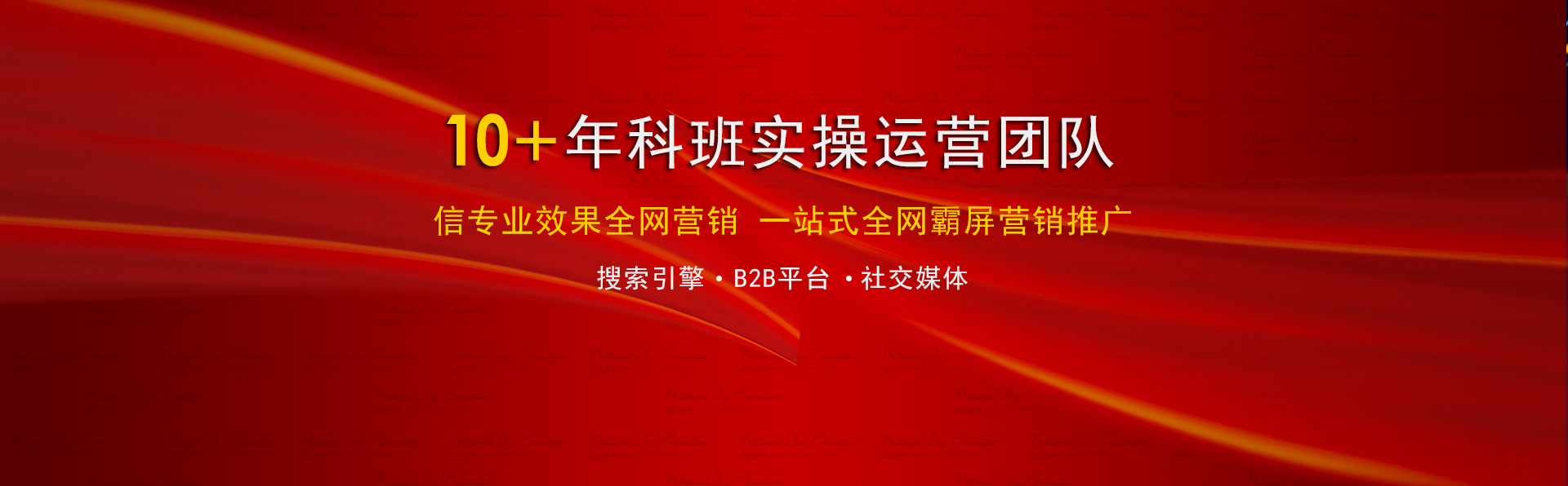 100+專業(yè)技術(shù)牛人,至少10年以上實戰(zhàn)經(jīng)驗,豐富的網(wǎng)絡資源,量身定制不同的解決方案,解決您的營銷推廣難題。